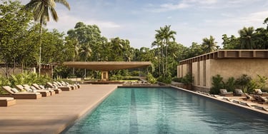 Con una arquitectura a cargo de Taller ADG y VITA, las 171 residencias de Litibú Bay Club están diseñadas para integrarse armoniosamente con el entorno. Utilizando materiales locales como piedra nativa y maderas artesanales, cada espacio aprovecha los ventanales de piso a techo para ofrecer vistas inigualables al océano, la selva y el emblemático Cerro del Mono