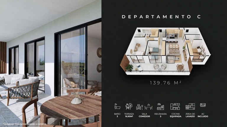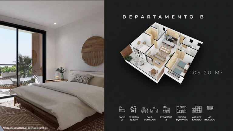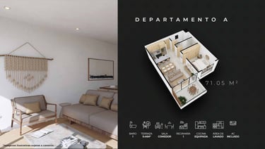 Con opciones de 1, 2 y 3 recámaras, los departamentos de Matiari destacan por sus acabados contemporáneos y una distribución inteligente que aprovecha la luz natural y la ventilación cruzada.