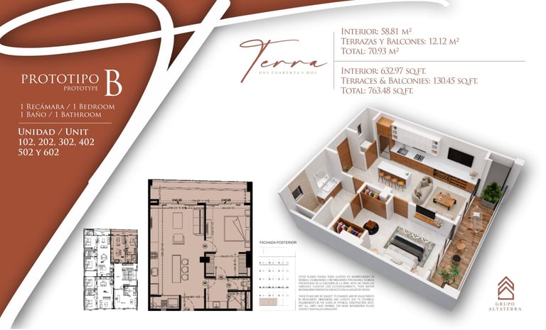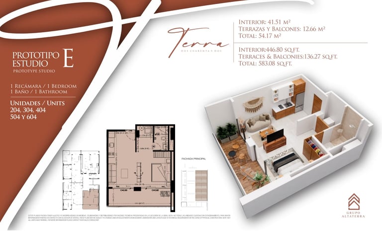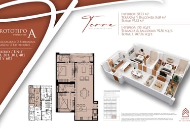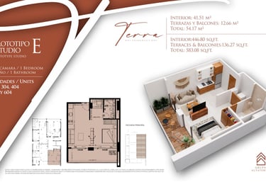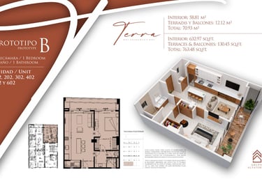 Explora las diferentes opciones que Terra 242 tiene para ti. Contamos con prototipos diseñados para cada estilo de vida, desde estudios eficientes hasta amplios departamentos de 2 recámaras, todos con acabados de lujo y terrazas privadas
