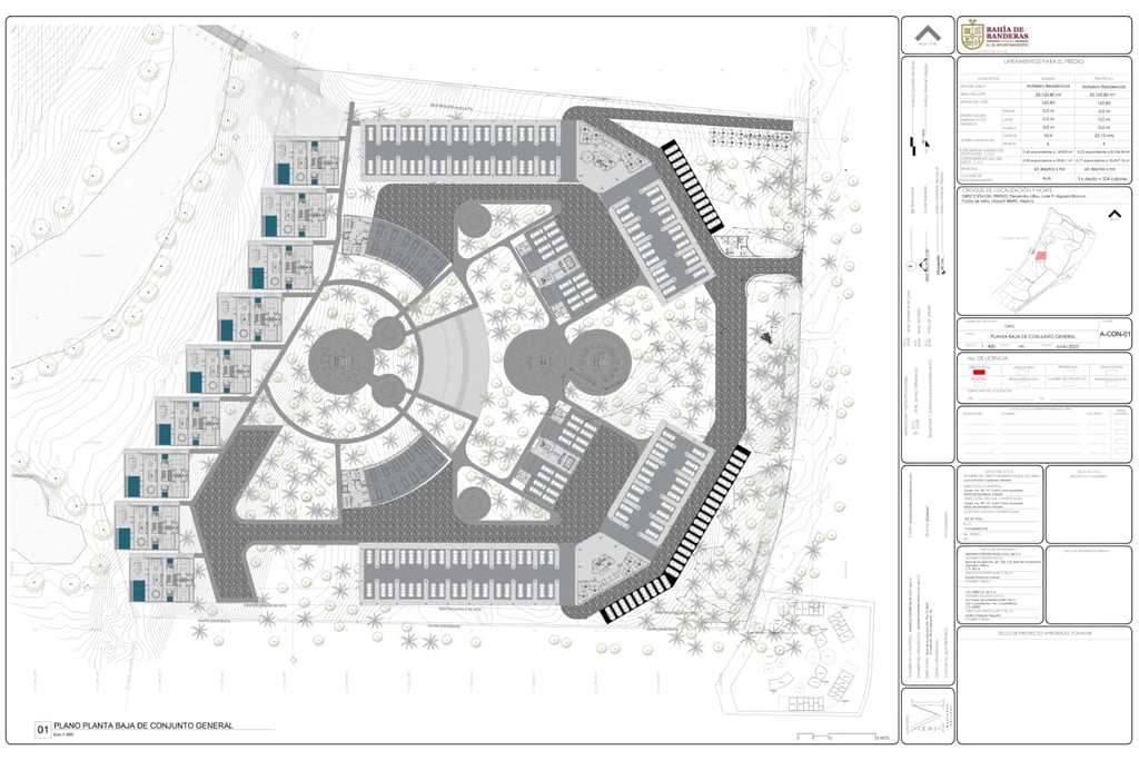 Lotes residenciales desde 400 m^2 con topografías planeadas para arquitectura de autor, permitiendo un diseño único frente al Pacífico